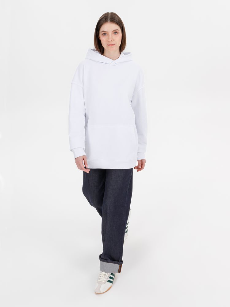 Худи унисекс со спущенным плечом и карманом-кенгуру расслабленного силуэта.