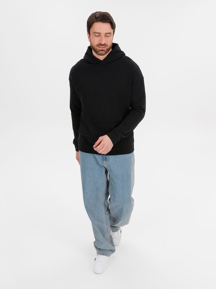 Худи унисекс со спущенным плечом и карманом-кенгуру расслабленного силуэта.