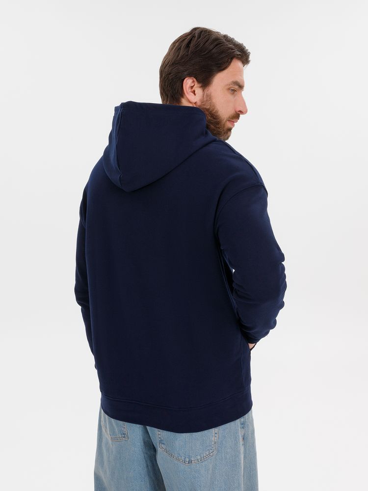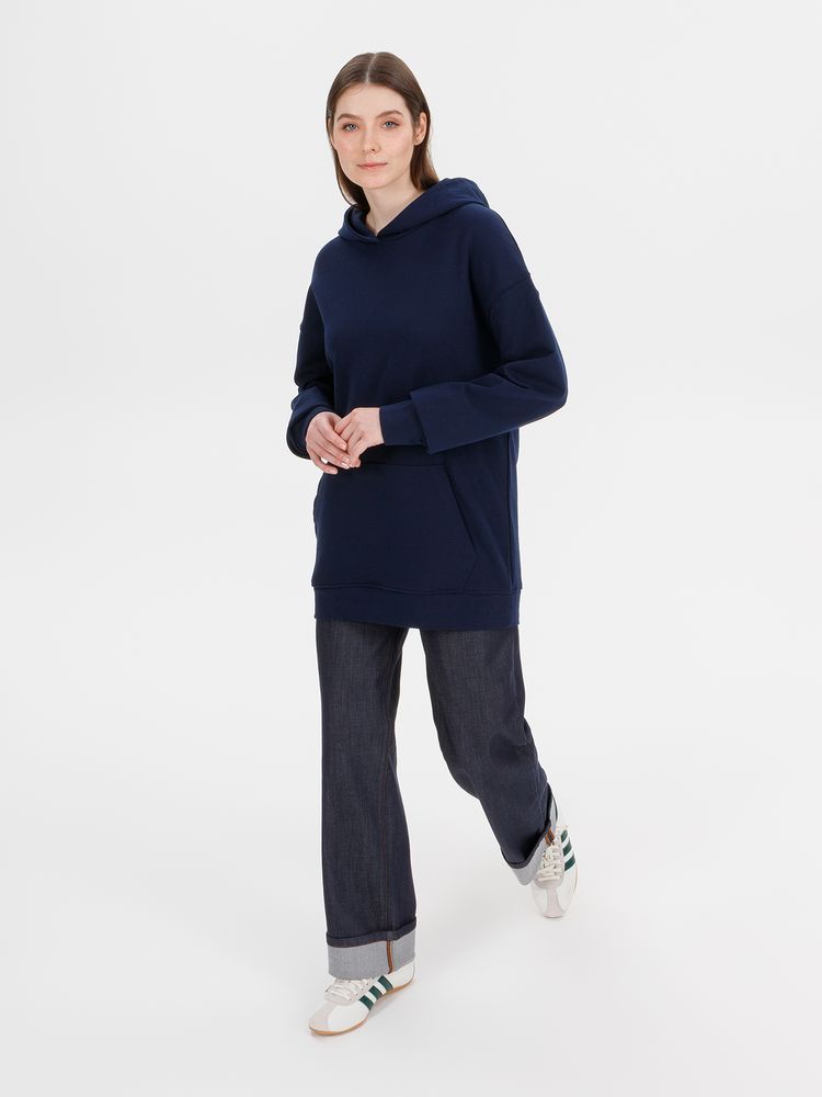 Худи унисекс со спущенным плечом и карманом-кенгуру расслабленного силуэта.