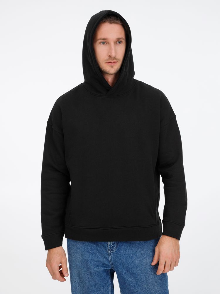 Худи унисекс оверсайз со спущенным плечом и внутренним карманом-кенгуру.