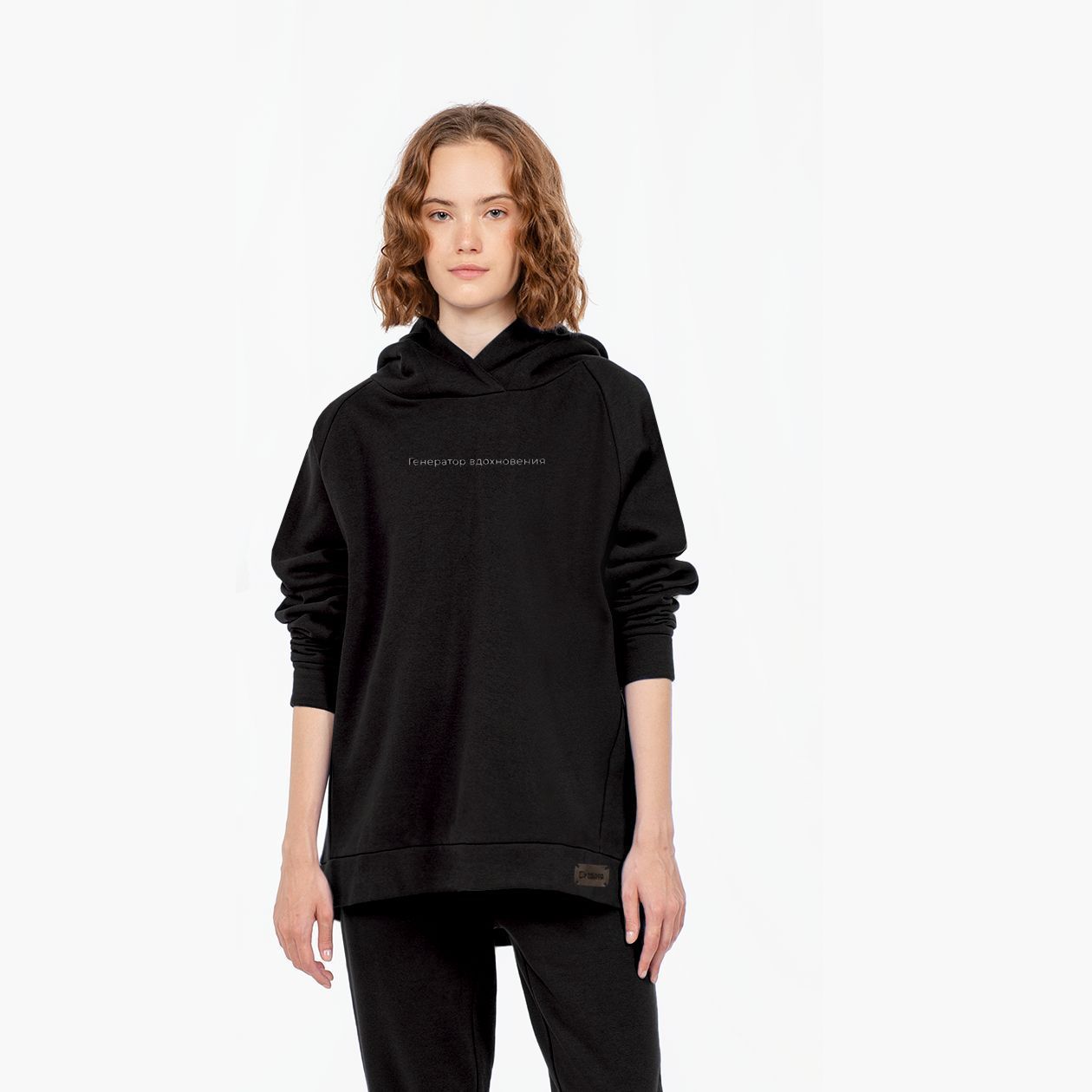 Худи унисекс свободной посадки с рукавами реглан и капюшоном.