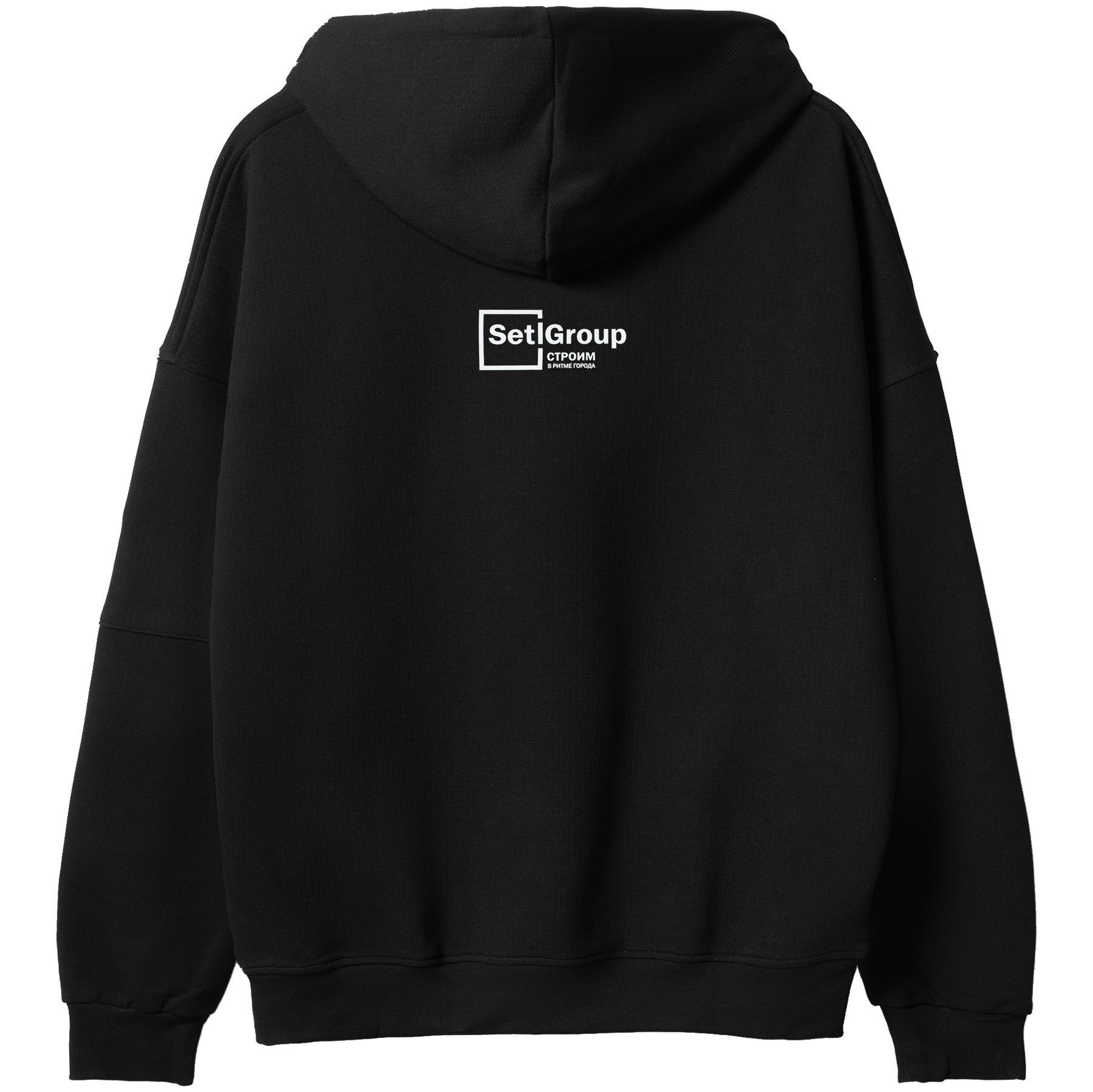 Худи унисекс свободной посадки со спущенным плечом из трикотажного полотна пике.