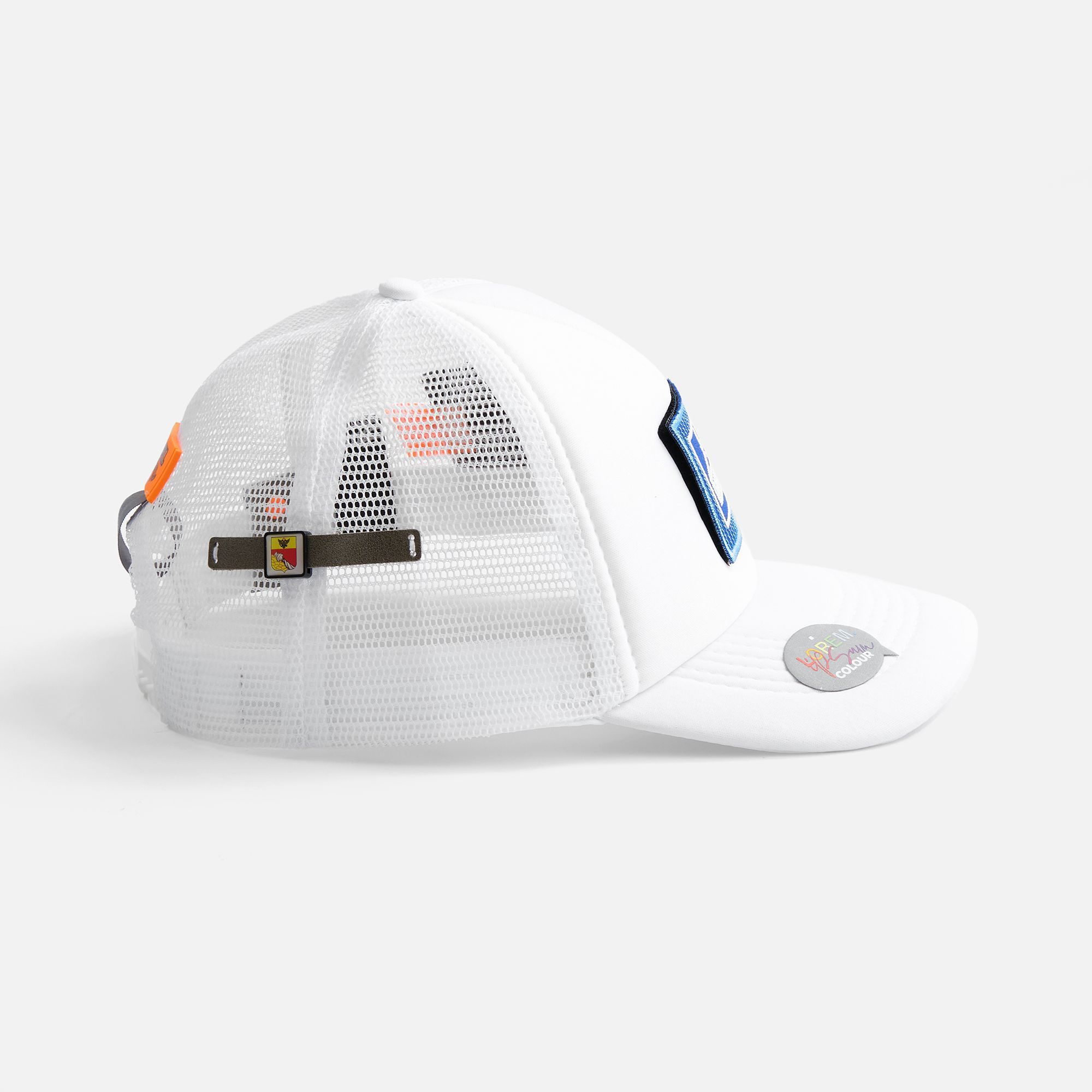 Бейсболка с 5 клиньями из сетки. Поролон в переднем клине (5 мм) и козырьке (3 мм). Регулируемая пластиковая застежка.