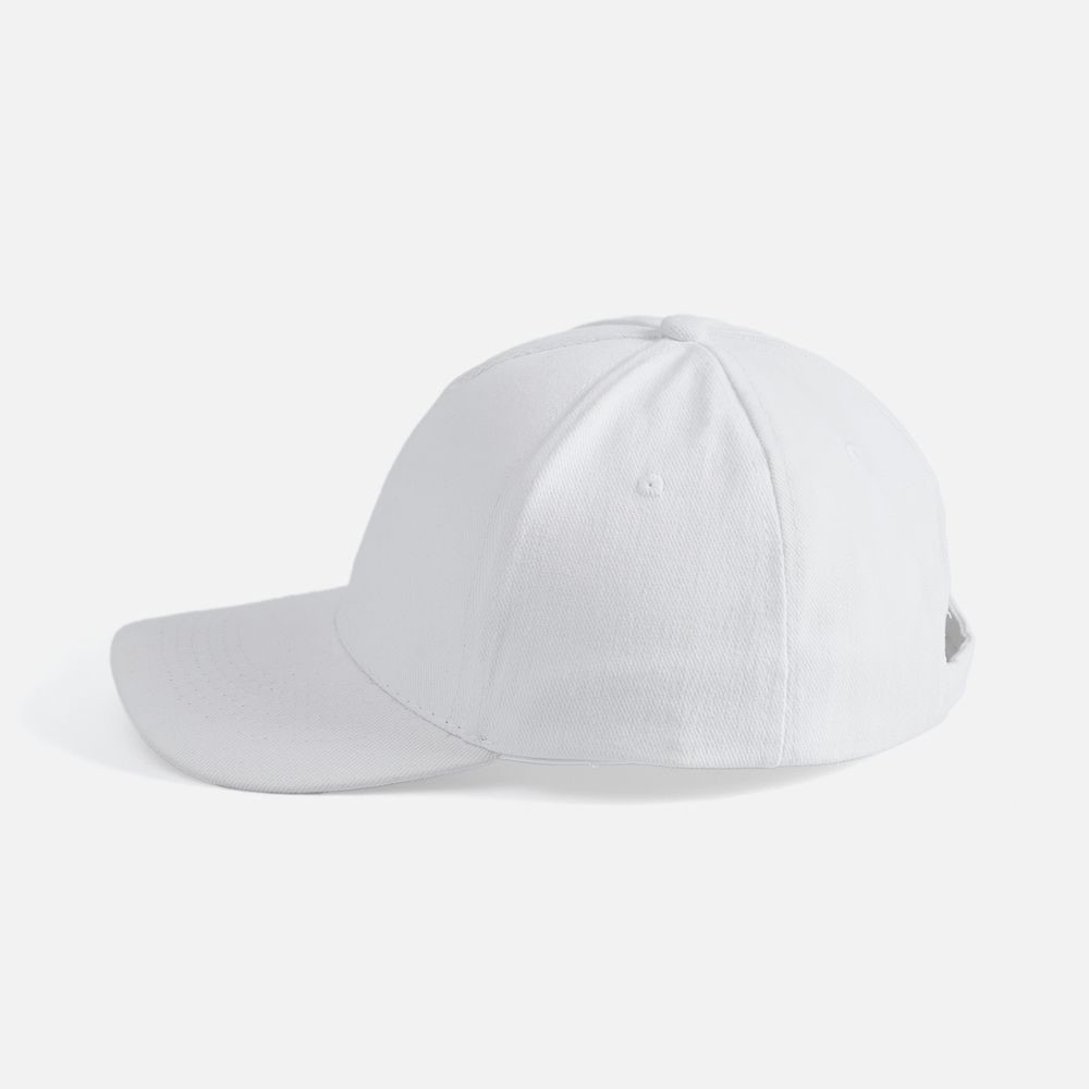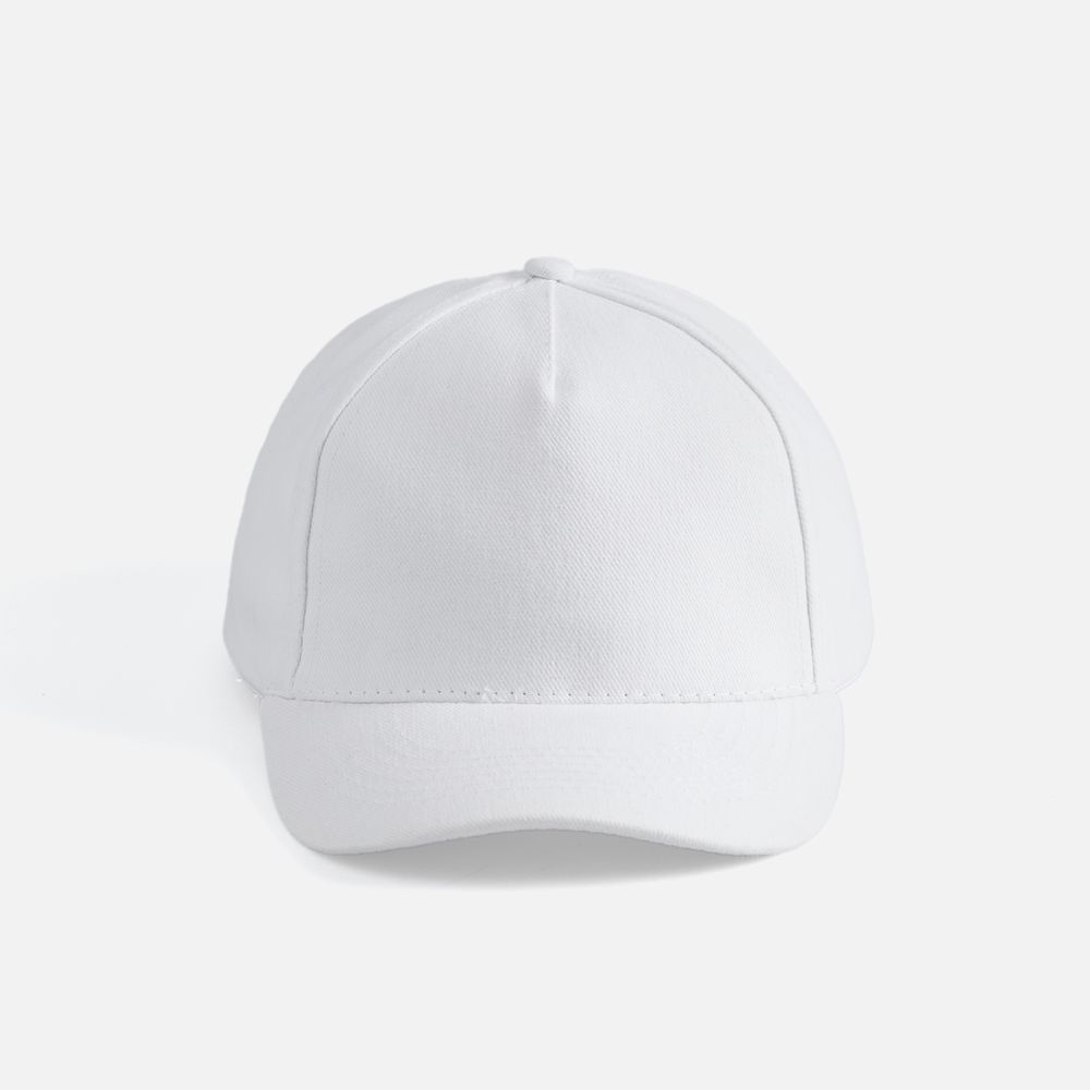 Модель бейсболки с 5-ю клиньями без лобового шва из плотного чесаного хлопка.