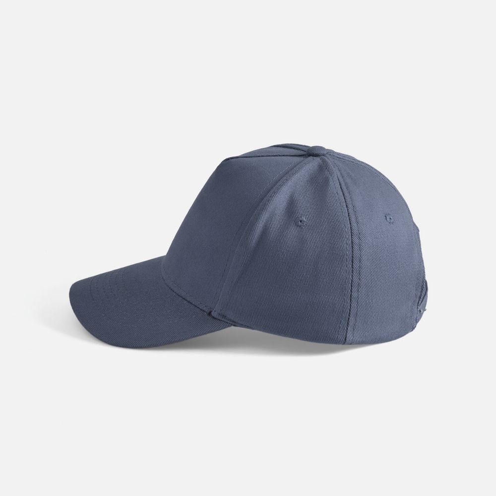 Модель бейсболки с 5-ю клиньями без лобового шва из плотного чесаного хлопка.