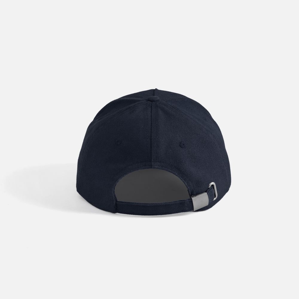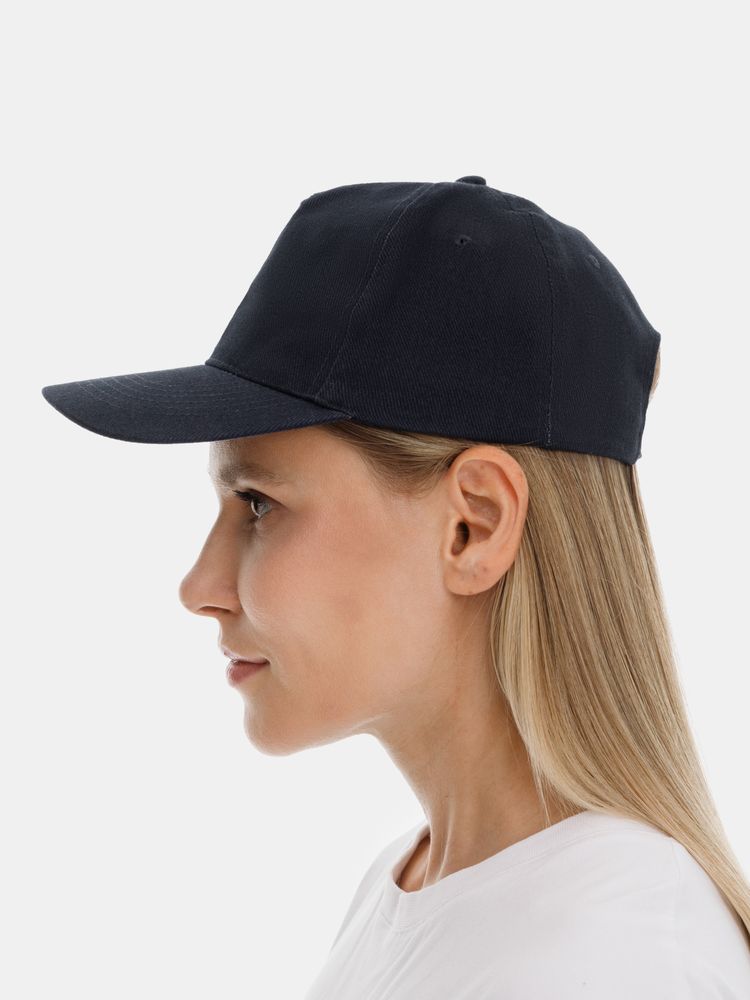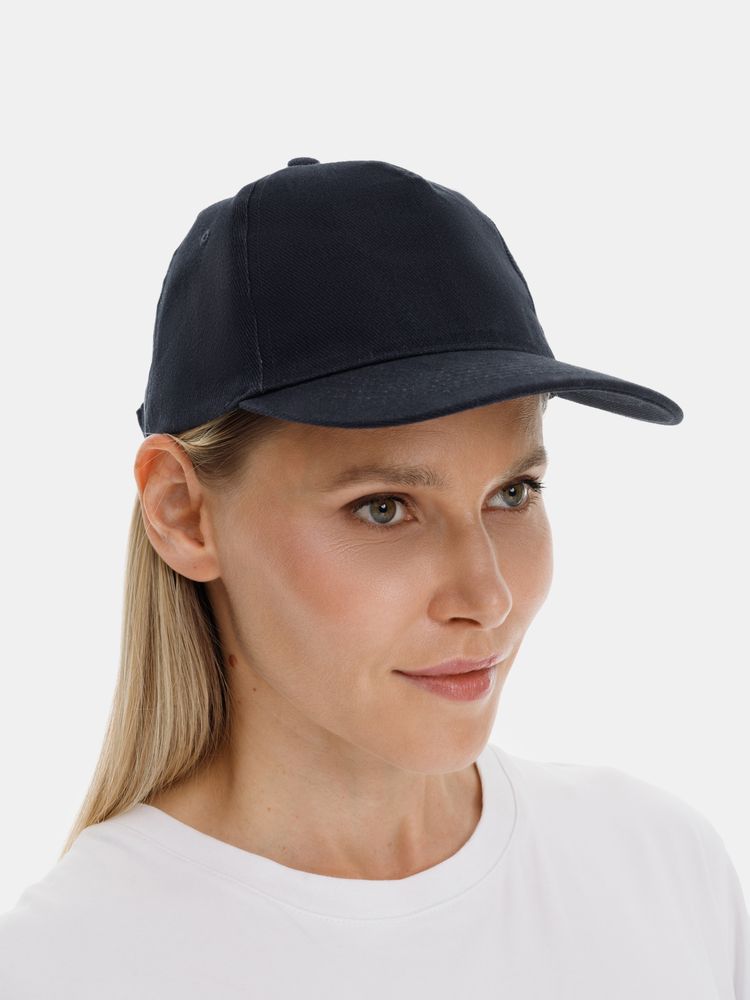 Модель бейсболки с 5-ю клиньями без лобового шва из плотного чесаного хлопка.