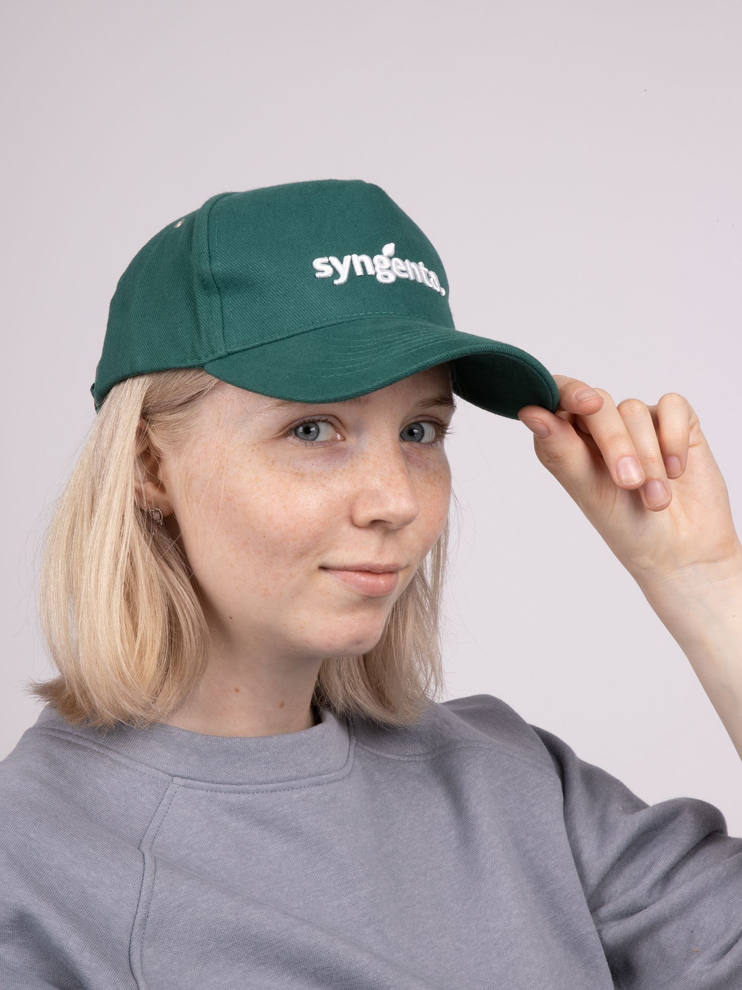 Минималистичная бейсболка с закругленным козырьком и большим местом для нанесения логотипа.