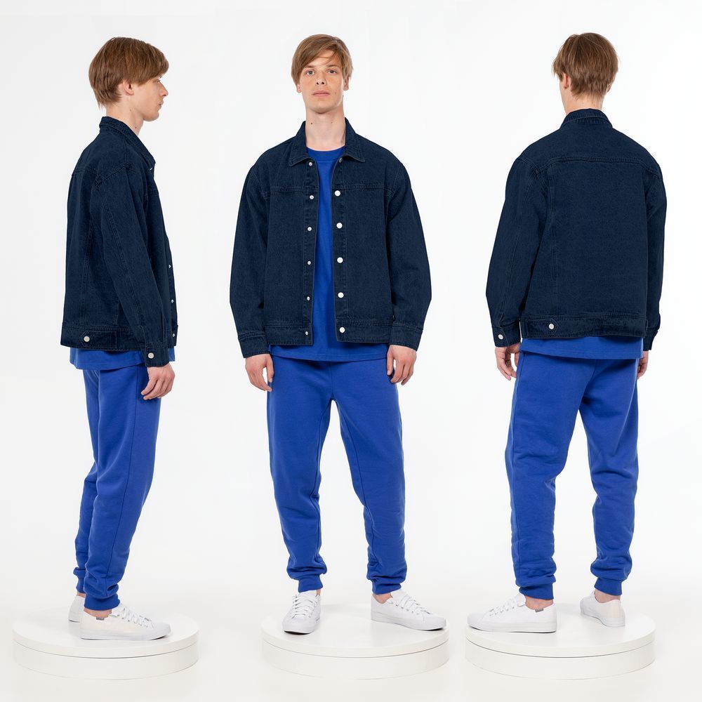 Джинсовая куртка унисекс на кнопках свободной посадки.