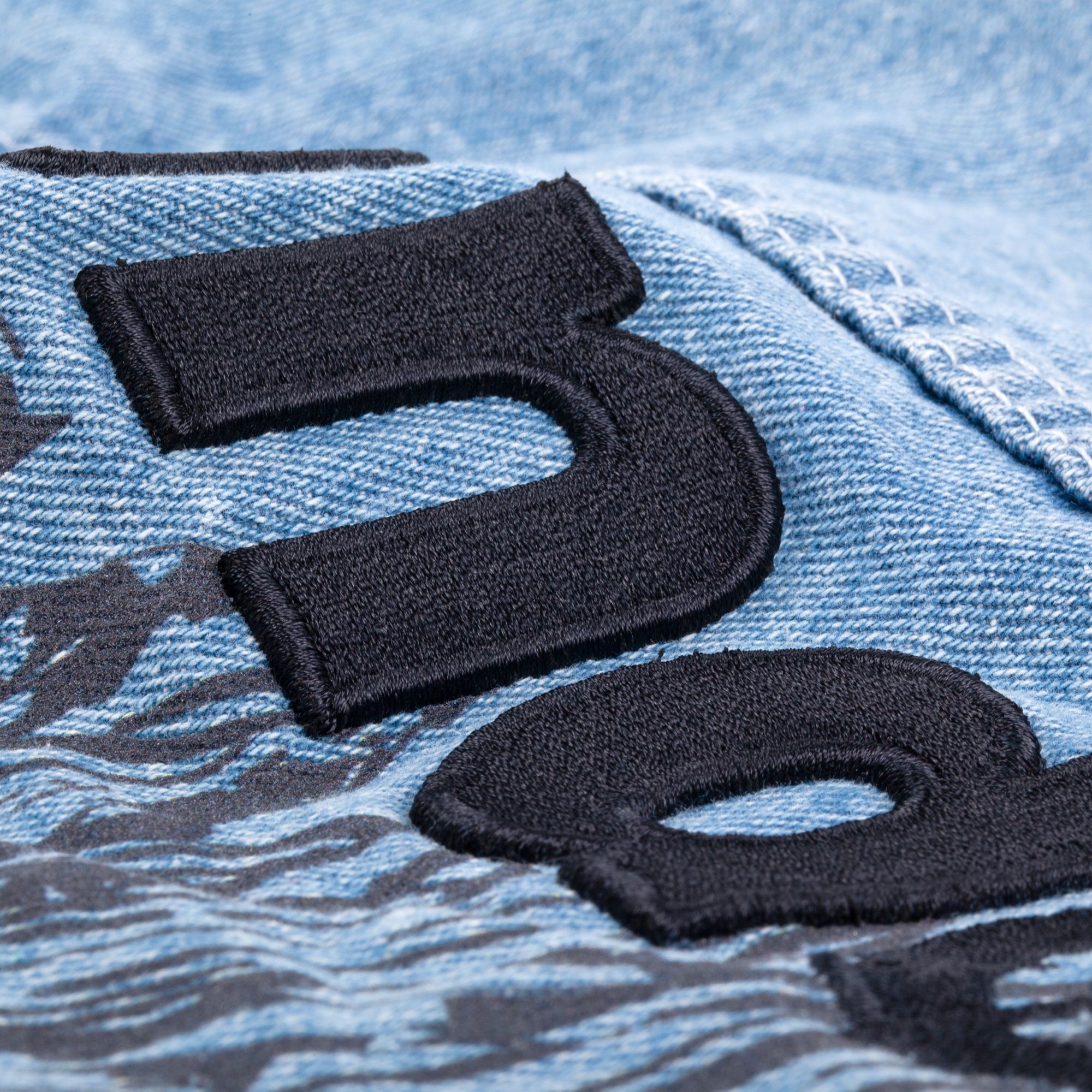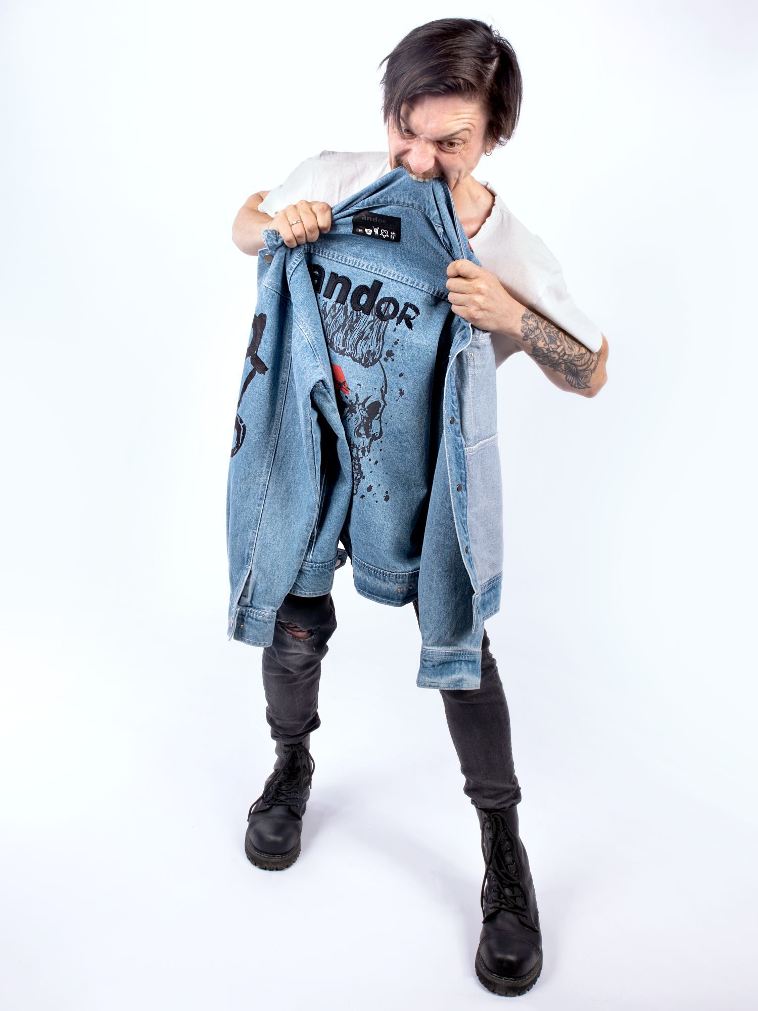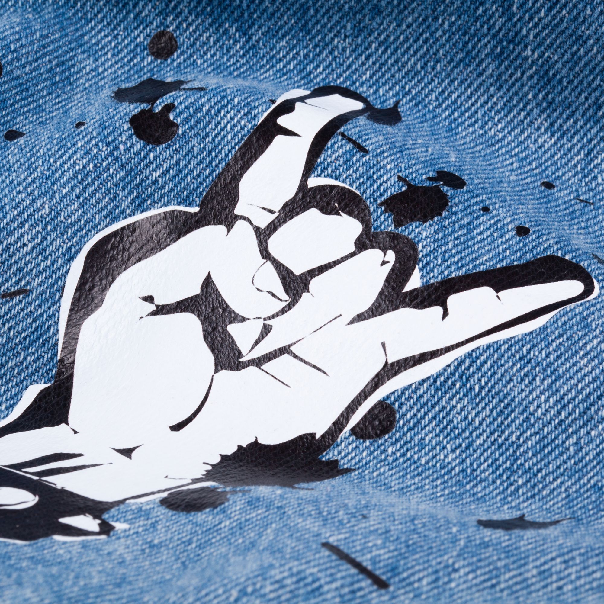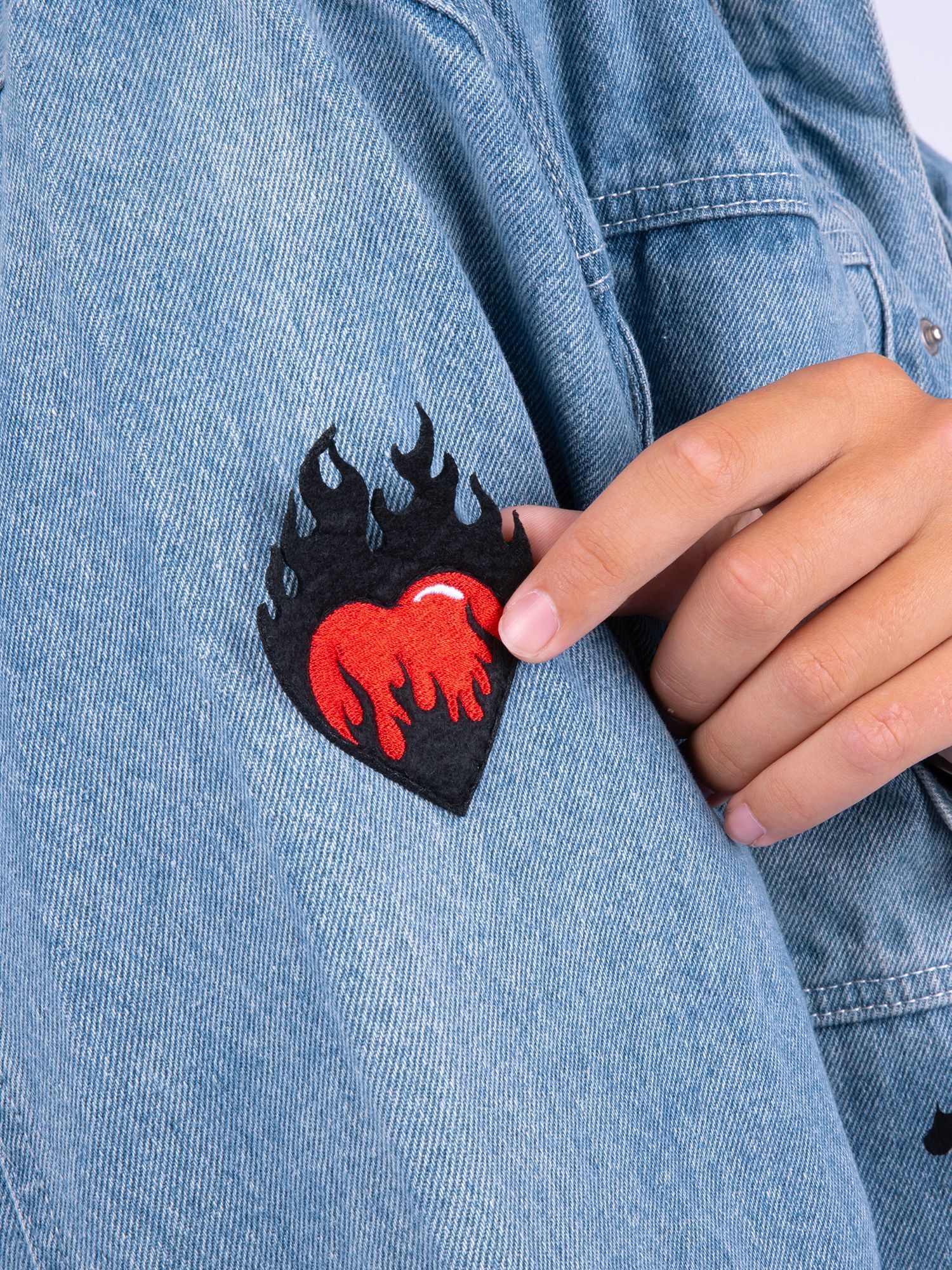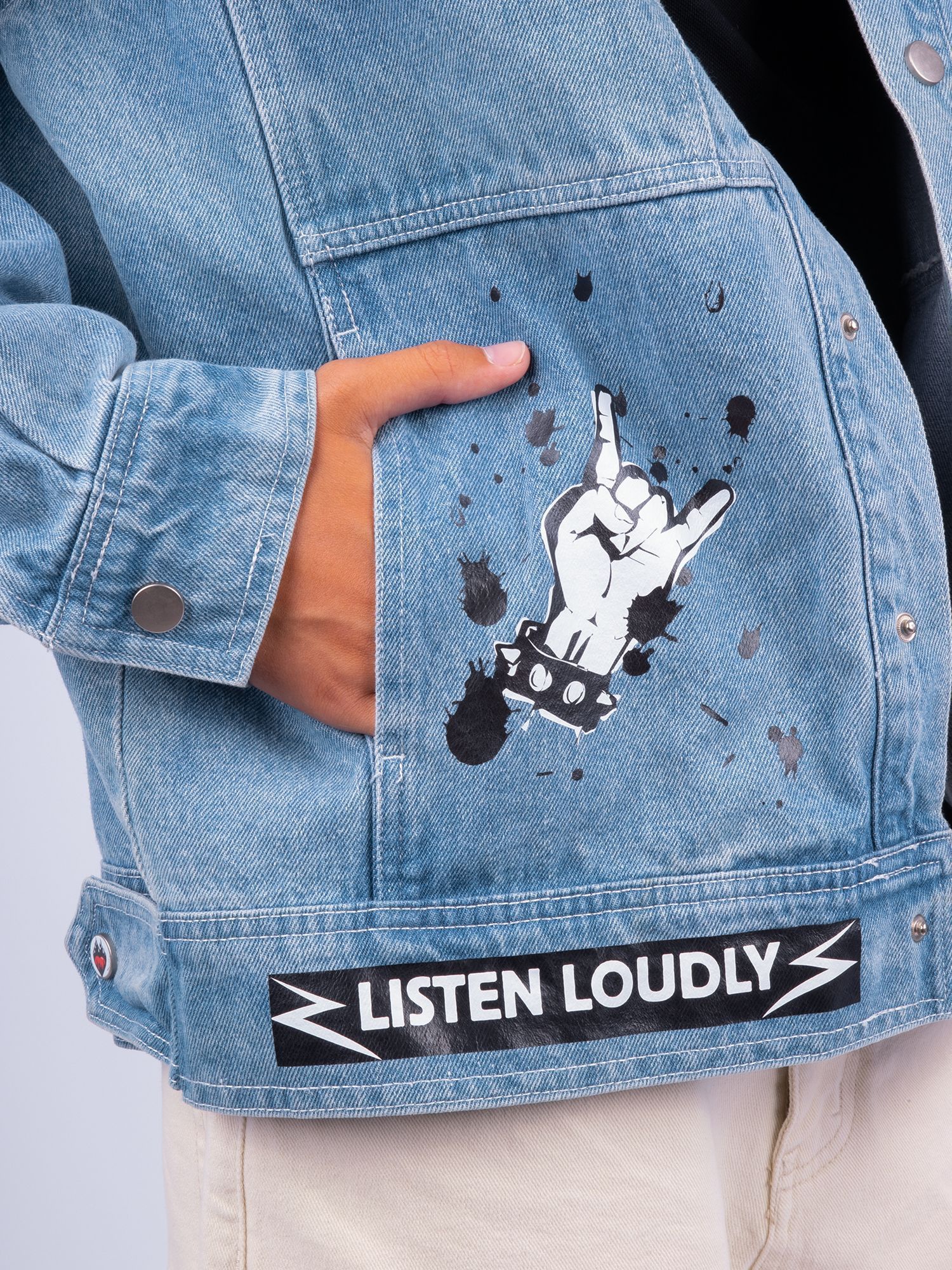 Джинсовая куртка унисекс на кнопках свободной посадки.