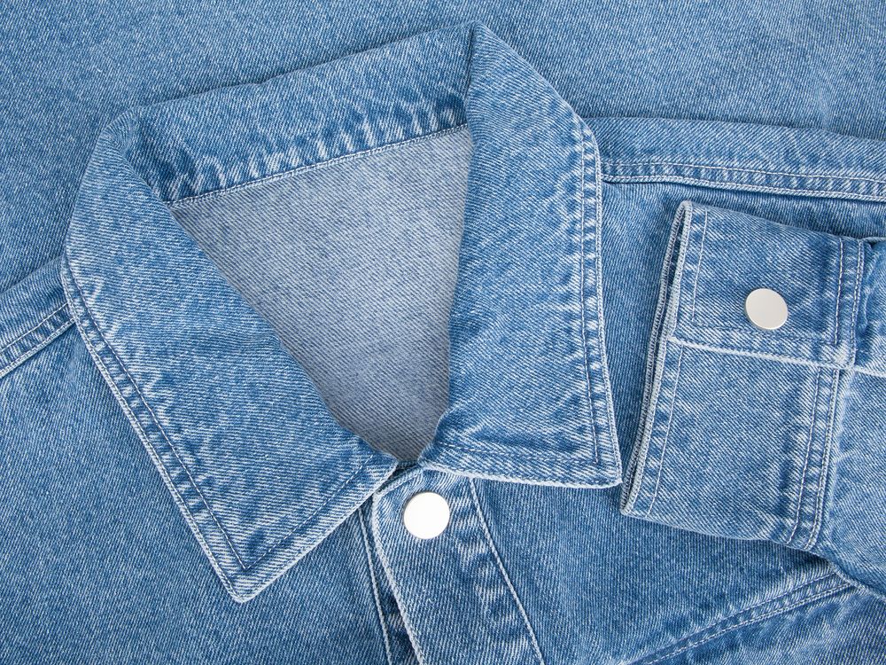 Джинсовая куртка унисекс на кнопках свободной посадки.
