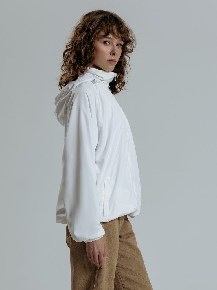 • Кулиска с эластичной резинкой по краю капюшона, по низу изделия и по горловине воротника изделия