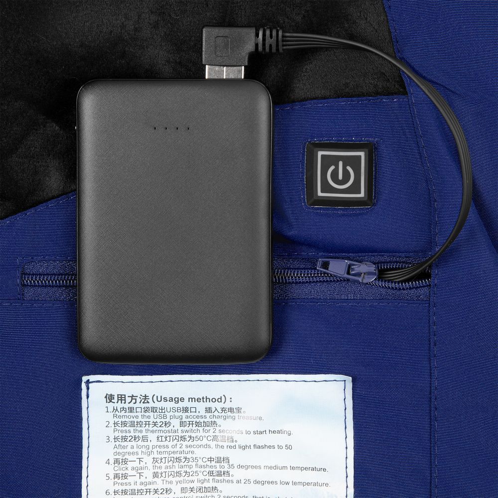 Утепленная куртка со встроенным нагревательным элементом из углеродного волокна в области спины и карманов. Работает от внешнего аккумулятора (в комплект не входит), подарит ощущение тепла и комфорта в любую погоду.