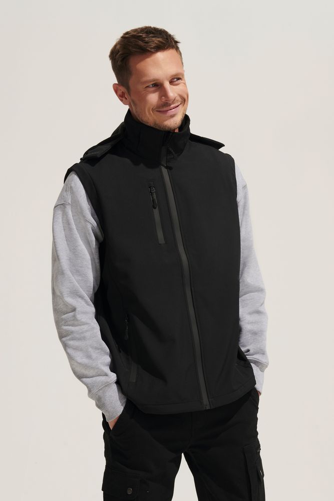 Влагоустойчивая и ветрозащитная куртка-трансформер из материала Softshell, выполненного из переработанного полиэстера. Отстегивающиеся рукава и капюшон позволяют выбрать ту конфигурацию, которая больше всего соответствует погоде за окном.