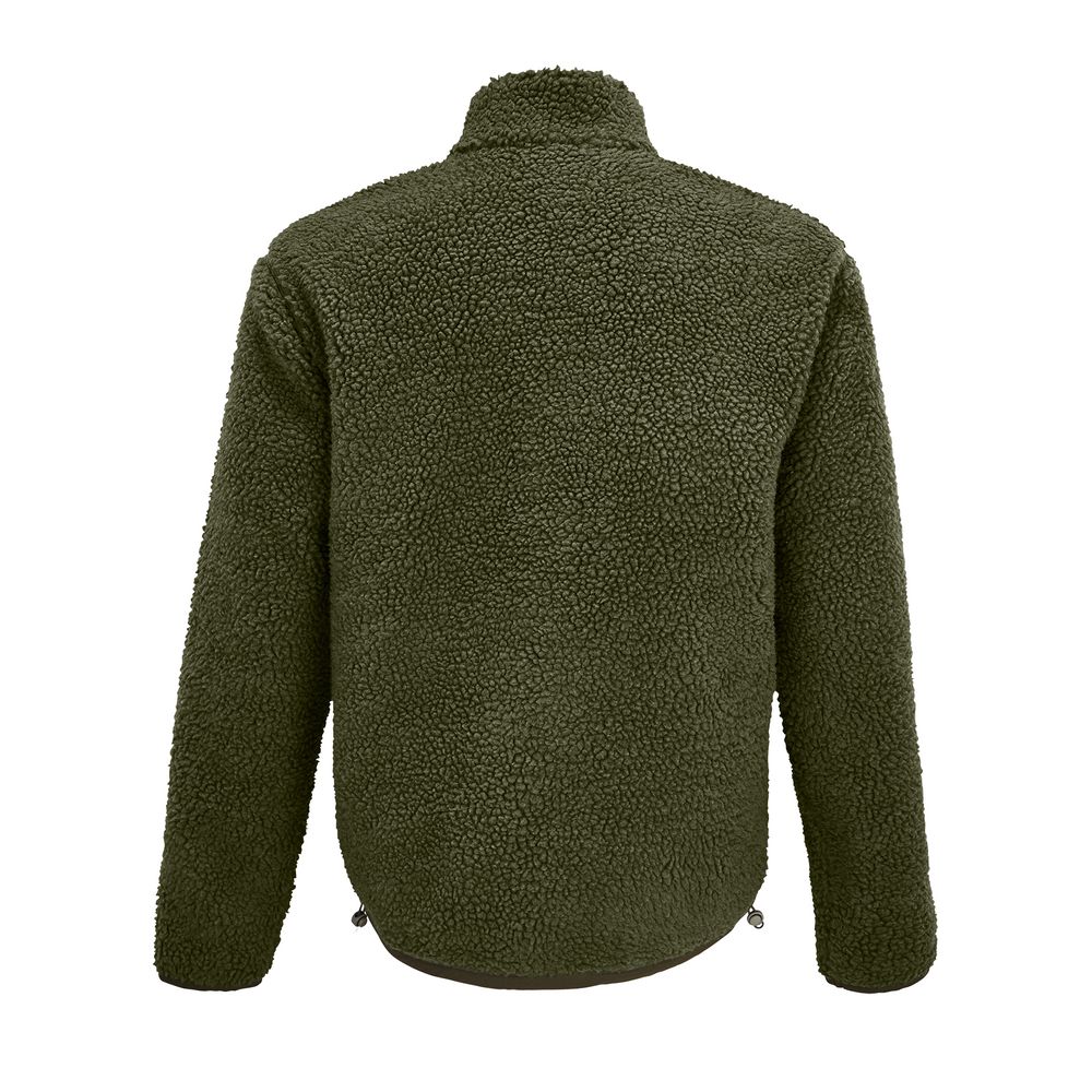 Куртка унисекс из фактурной искусственной шерпы с гладкой отделкой из таслана.