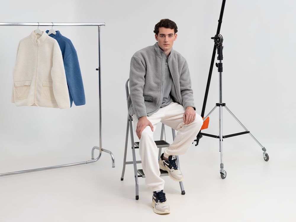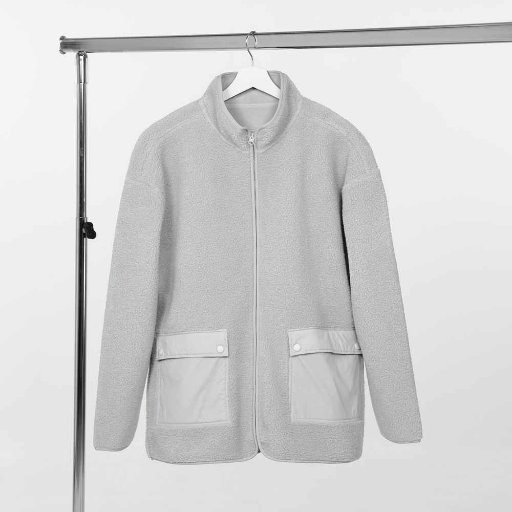 Куртка на молнии из современного двухслойного материала — модный искусственный мех снаружи и уютный флис внутри. Накладные карманы из гладкого нейлона создают заметный визуальный контраст и делают куртку Oblako по-настоящему стильным предметом гардероба.