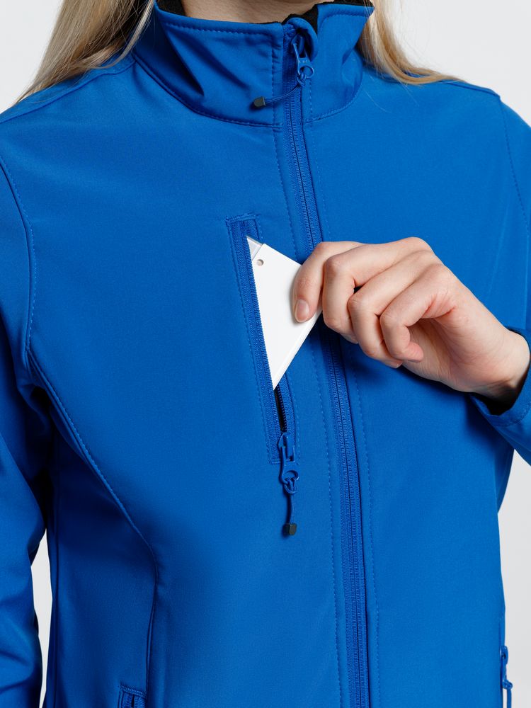 Женская водостойкая куртка из дышащего трехслойного материала софтшелл.