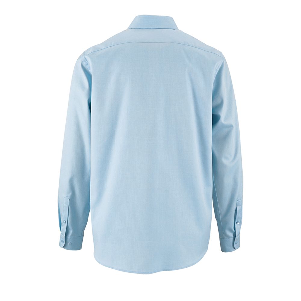 Рубашка прямого кроя с маленьким воротником, планка с 7 пуговицами. Выполнена из фактурной ткани, узор «елочка».