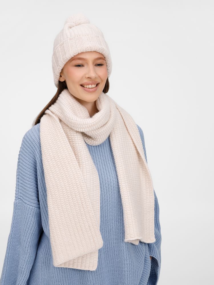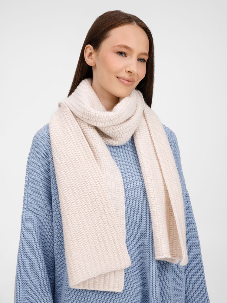 Однослойный шарф Frissonelle фактурной вязки — универсальный аксессуар: полушерстяная пряжа с выразительным рельефным узором создает объем, даря тепло и ощущение уюта. Сдержанная палитра и лаконичный дизайн делают его гармоничным дополнением к пальто, куртке или пуловеру.