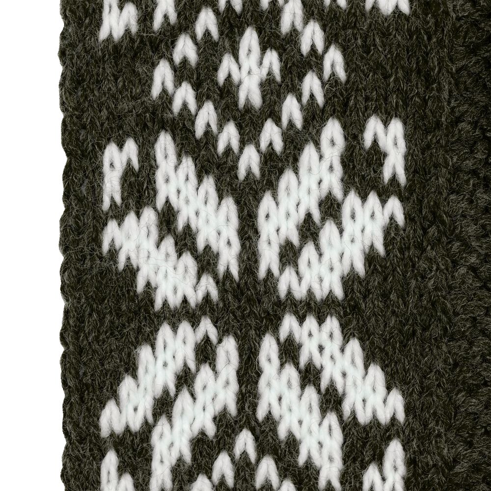 Выполнен с совмещением фактурной вязки и жаккардового узора.