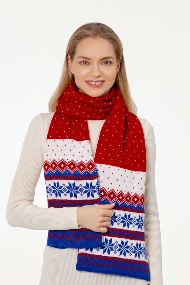Шарф Happy View — это настроение волшебных рождественских фильмов, переданное через традиционный орнамент и классическое сочетание цветов.