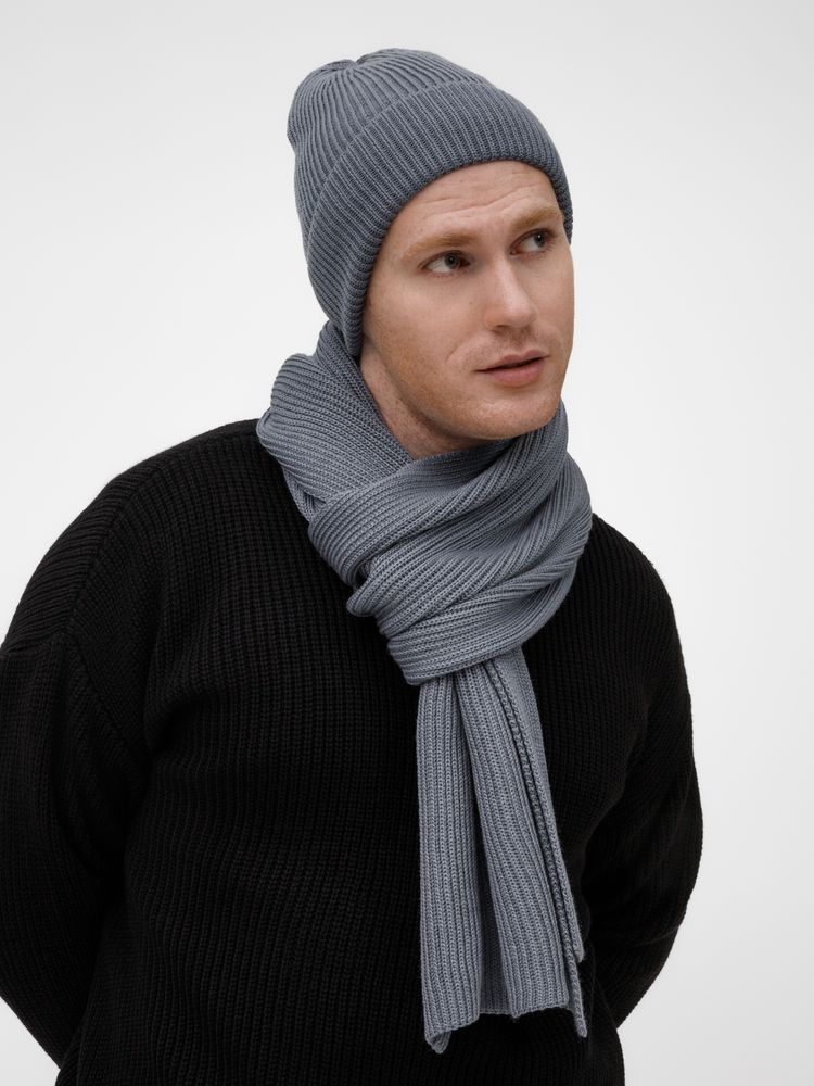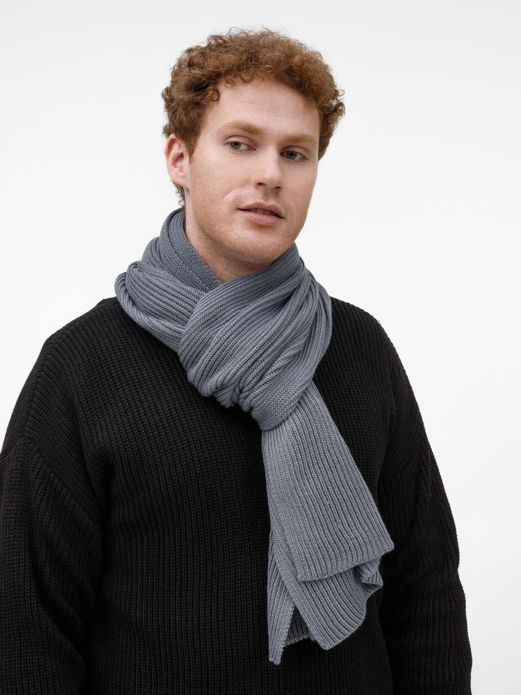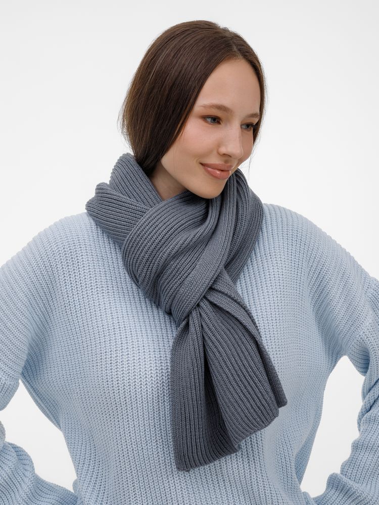 Широкий шарф из мягкой полушерстяной пряжи с выразительной фактурной вязкой создает современный запоминающийся образ.