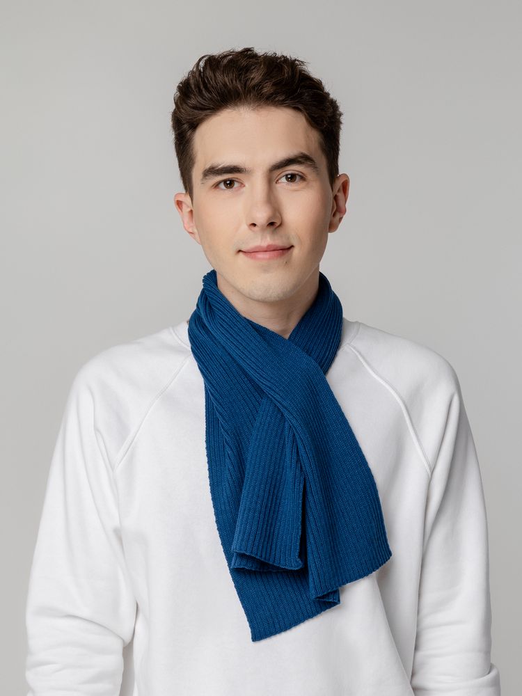 Однослойный шарф фактурной вязки с отверстием для быстрого и удобного завязывания.
