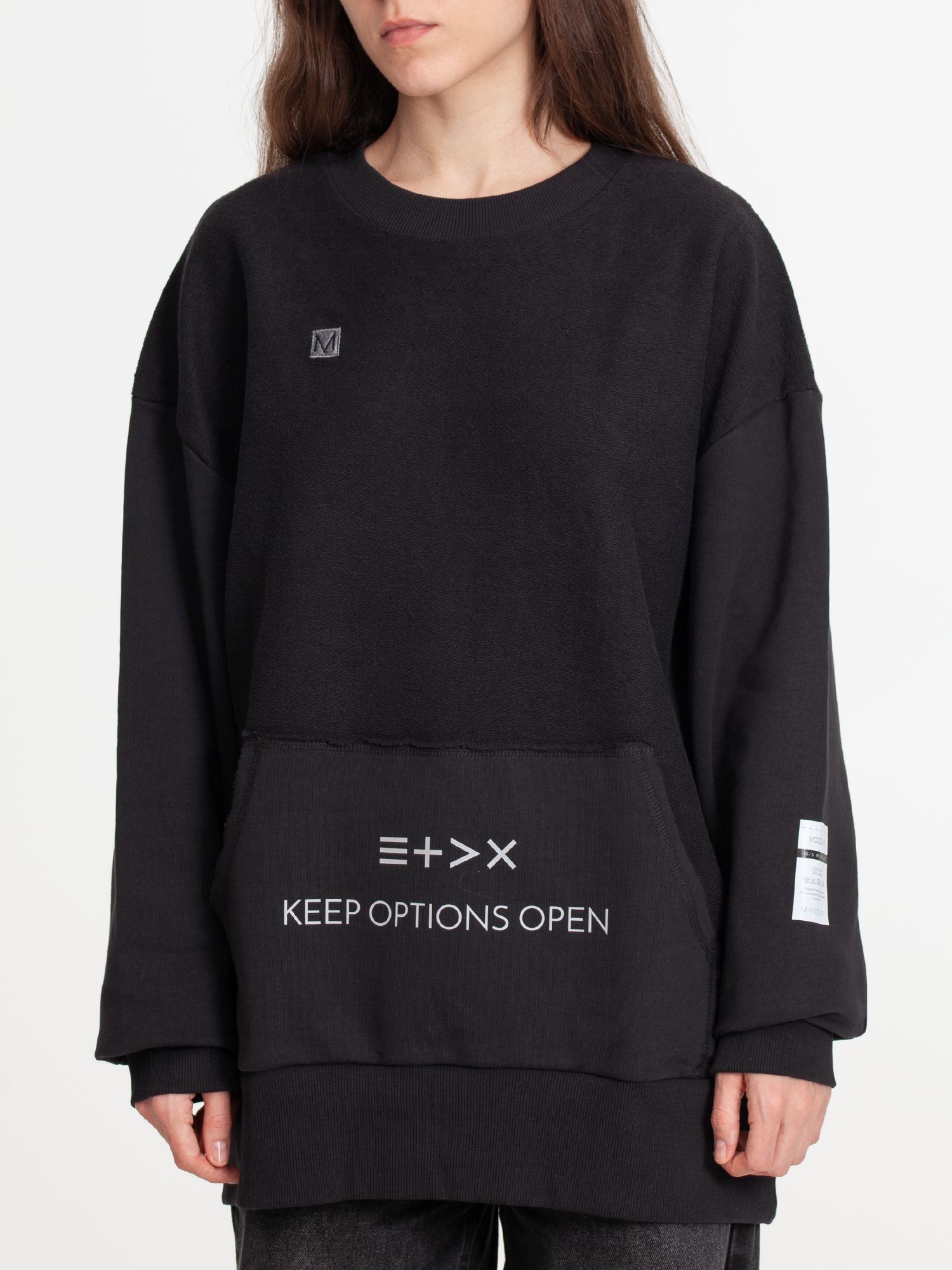 Благодаря особой конструкции, где часть деталей — перед и спинка — вывернута наизнанку, свитшот приобретает запоминающийся вид. Так внутренняя, обычно незаметная сторона материала превращается в лицевую: миниатюрные петельки бывшей изнанки становятся настоящим украшением толстовки, добавляя ей оригинальности и эффект невероятно приятной плюшевости.