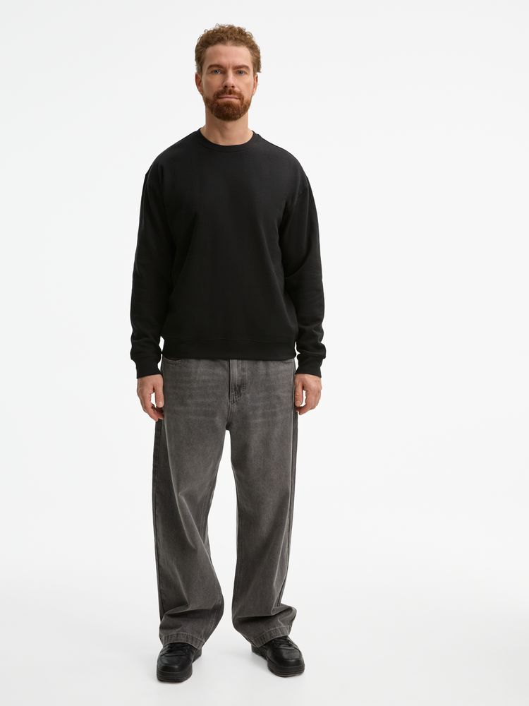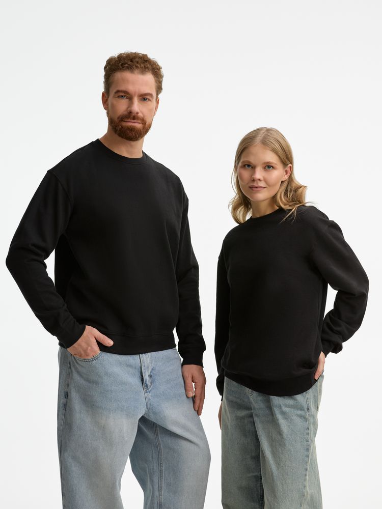 Свитшот унисекс из хлопка и переработанного полиэстера с круглым вырезом и втачным рукавом.