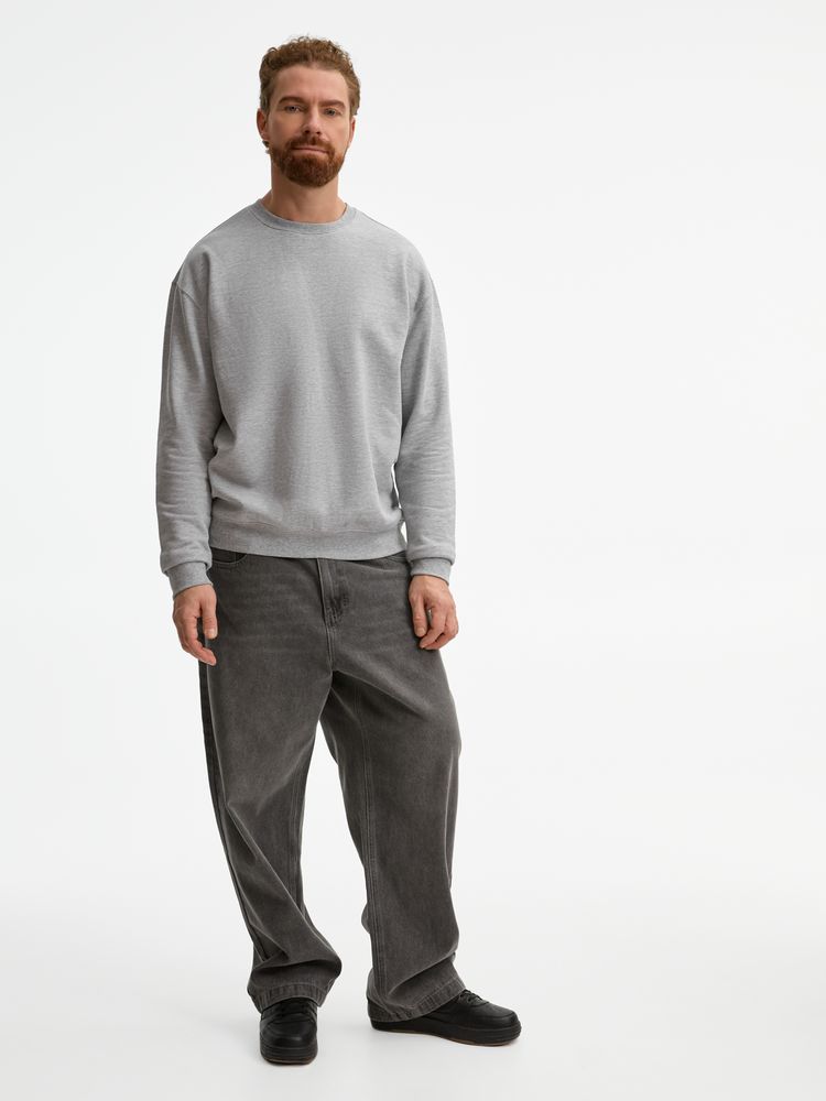 Свитшот унисекс из хлопка и переработанного полиэстера с круглым вырезом и втачным рукавом.