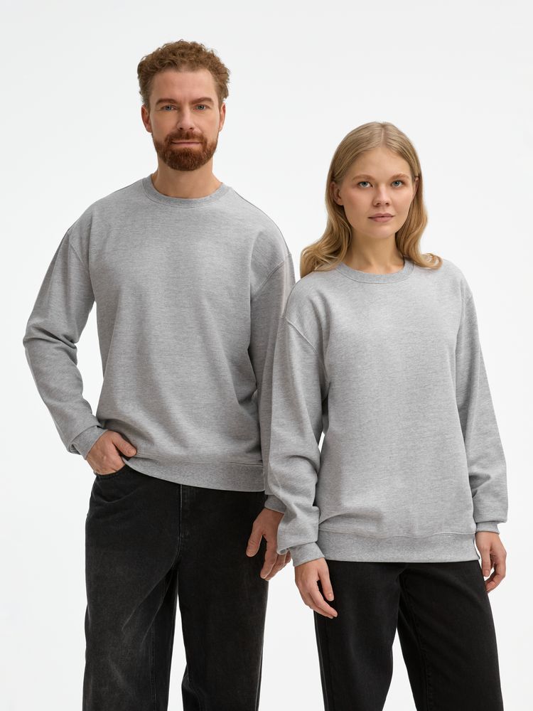 Свитшот унисекс из хлопка и переработанного полиэстера с круглым вырезом и втачным рукавом.