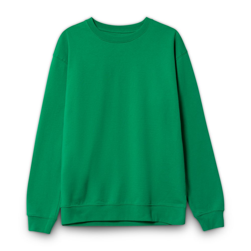 Свитшот унисекс из хлопка и переработанного полиэстера с круглым вырезом и втачным рукавом.