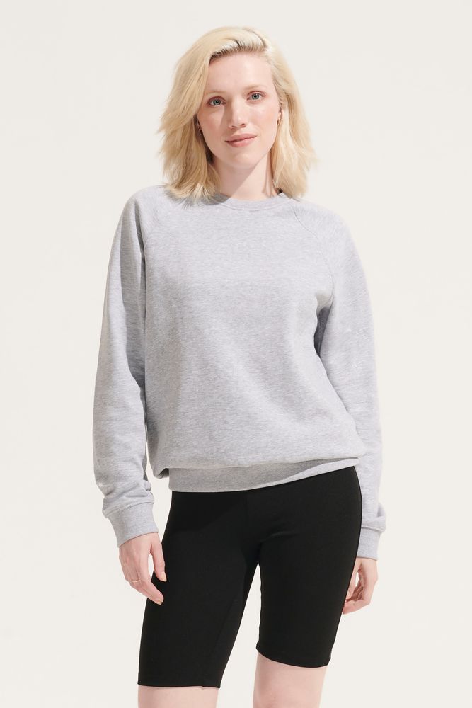 Свитшот унисекс из органического хлопка. Лейбл производителя в боковом шве изнутри, в шве горловины — только бирка с размером, что позволяет удобно нанести свой логотип.