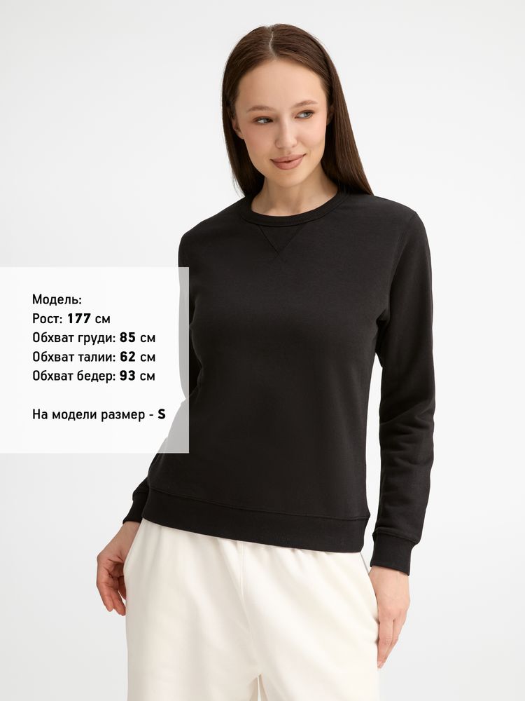 Женская утепленная толстовка с круглым вырезом и декоративной треугольной вставкой. Лейбл производителя в боковом шве изнутри, в шве горловины — только бирка с размером, что позволяет вам нанести свой логотип.