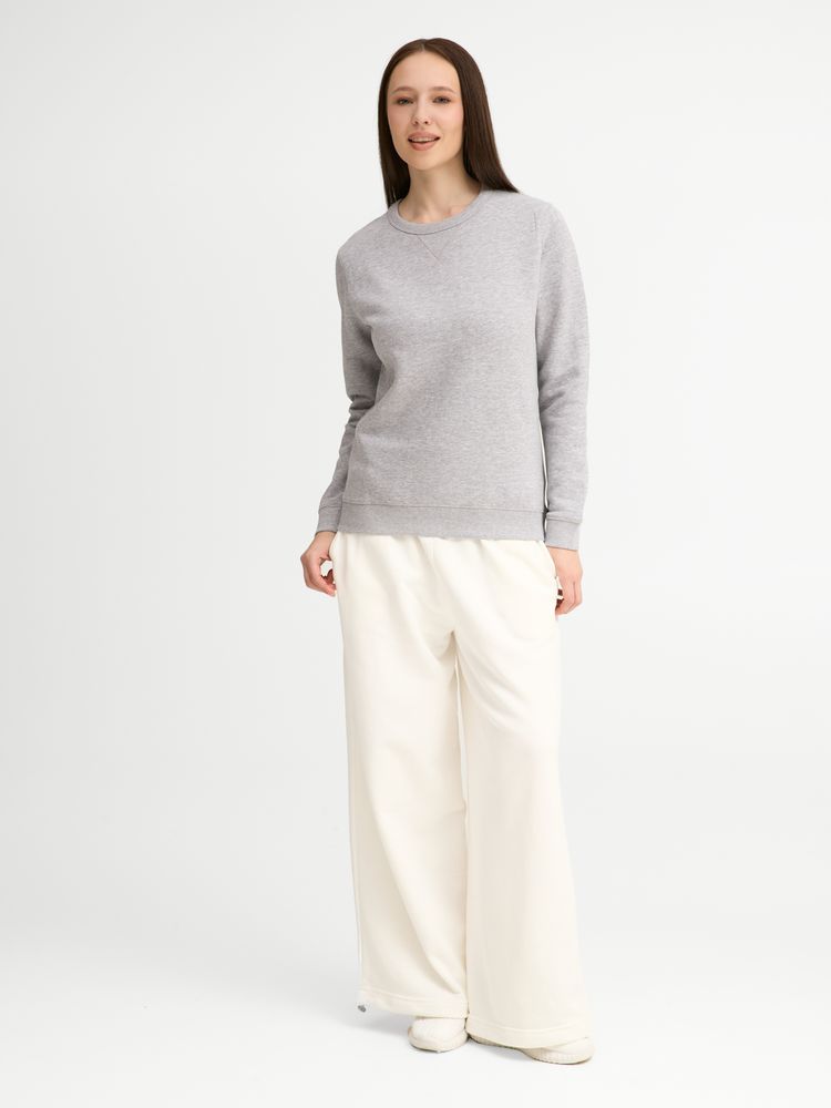 Женская утепленная толстовка с круглым вырезом и декоративной треугольной вставкой. Лейбл производителя в боковом шве изнутри, в шве горловины — только бирка с размером, что позволяет вам нанести свой логотип.