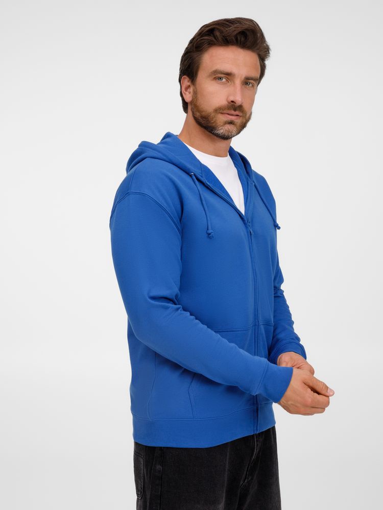 Толстовка унисекс на молнии и с капюшоном выполнена из хлопка с добавлением переработанного полиэстера.