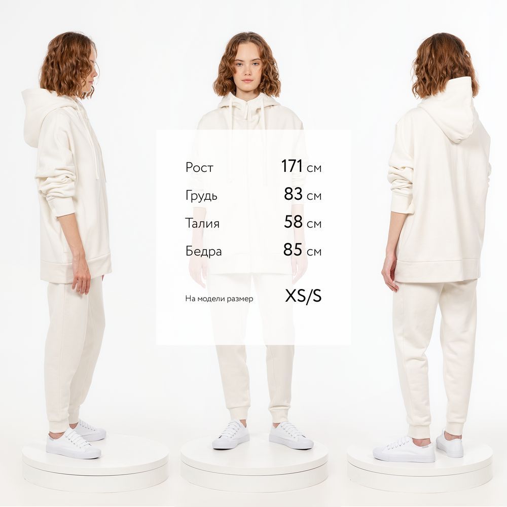 Толстовка унисекс на молнии со спущенным плечом.