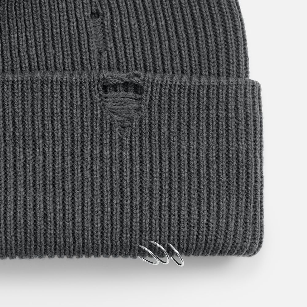 Шапка Ribelle — это практичная двухслойная модель из акрила, которая сочетает уют с современным дизайном. Ее регулируемый отворот с рваным краем и металлическими кольцами в качестве украшений создает выразительный и необычный акцент. Благодаря универсальности и продуманной конструкции она станет стильным и функциональным дополнением гардероба.