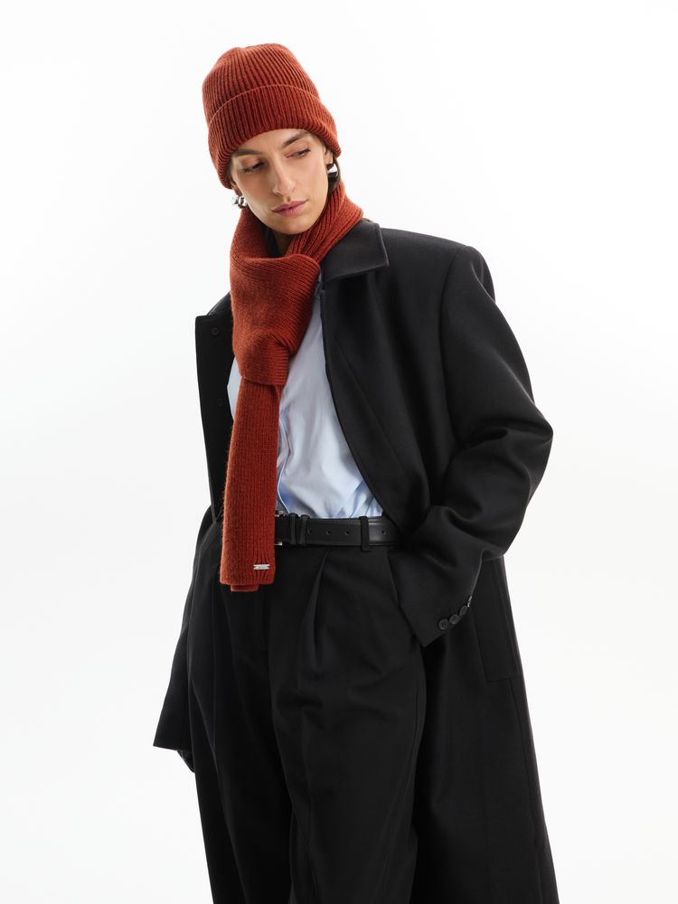 Шапка Bernard из воздушной шерстяной пряжи дополнит стильный зимний образ.