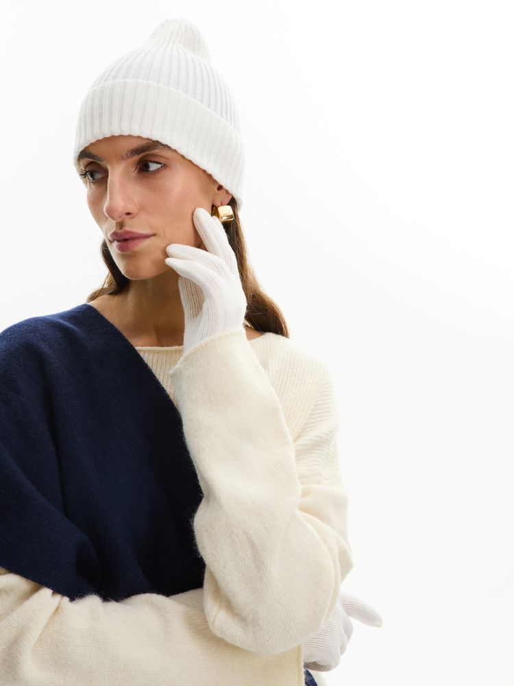 Шапка Bernard из воздушной шерстяной пряжи дополнит стильный зимний образ.