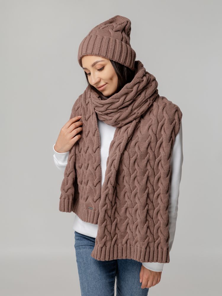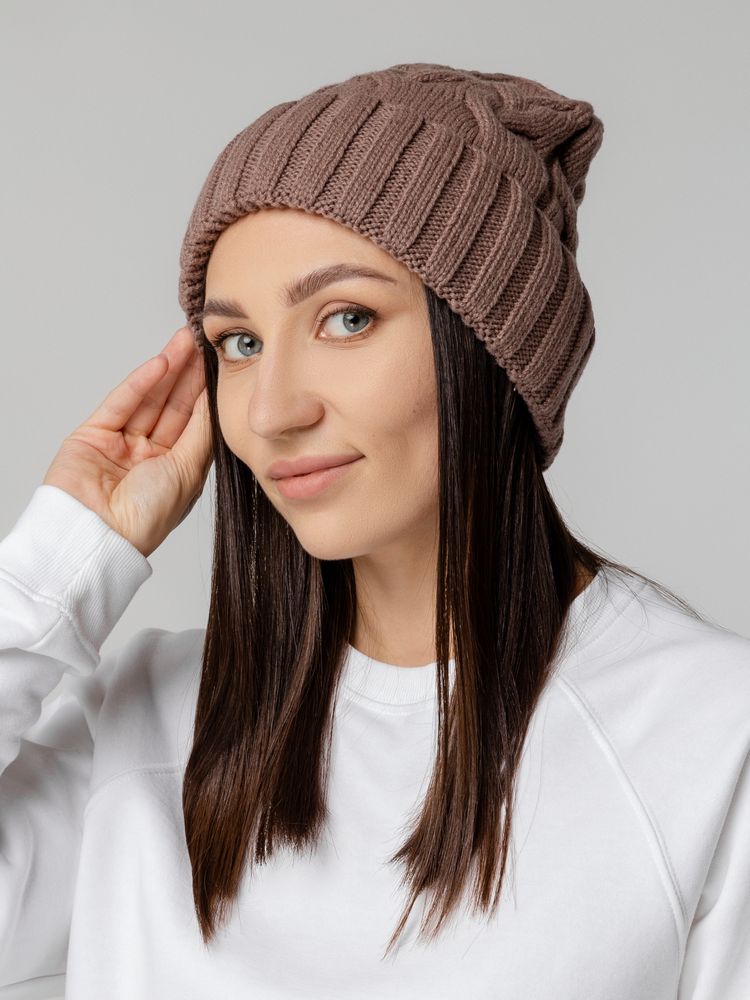 Мягкая удлиненная женская шапка объемной вязки Loren — уютный вариант для создания современного городского образа.