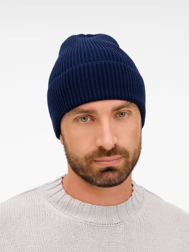 Удлиненный силуэт шапки Nobilis Mono из мягкой полушерстяной пряжи с широким отворотом создает стильный современный образ, а фактурная вязка добавляет объем и выразительность.