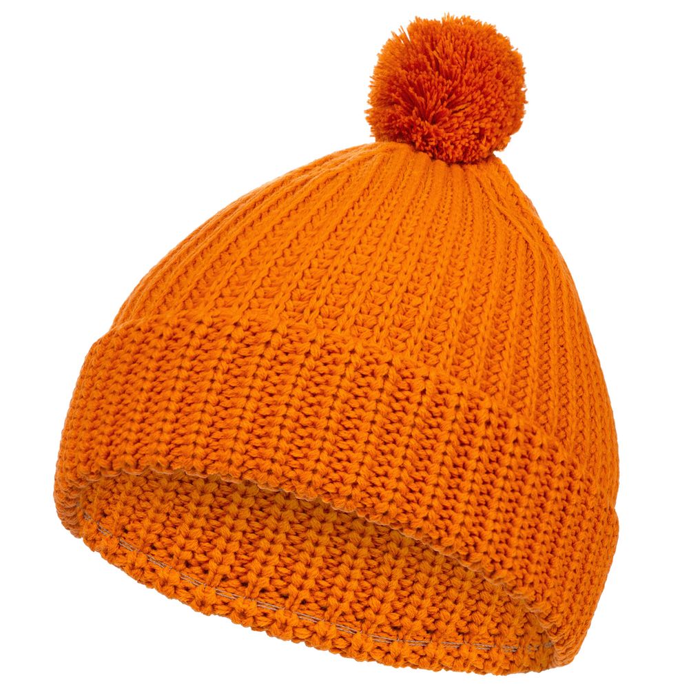 Однослойная шапка из высокообъемной пряжи с помпоном.