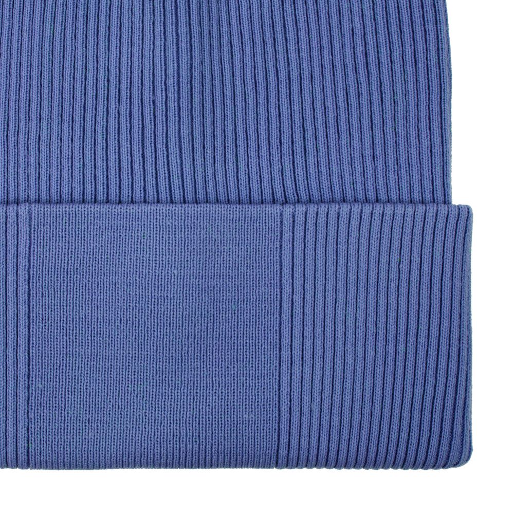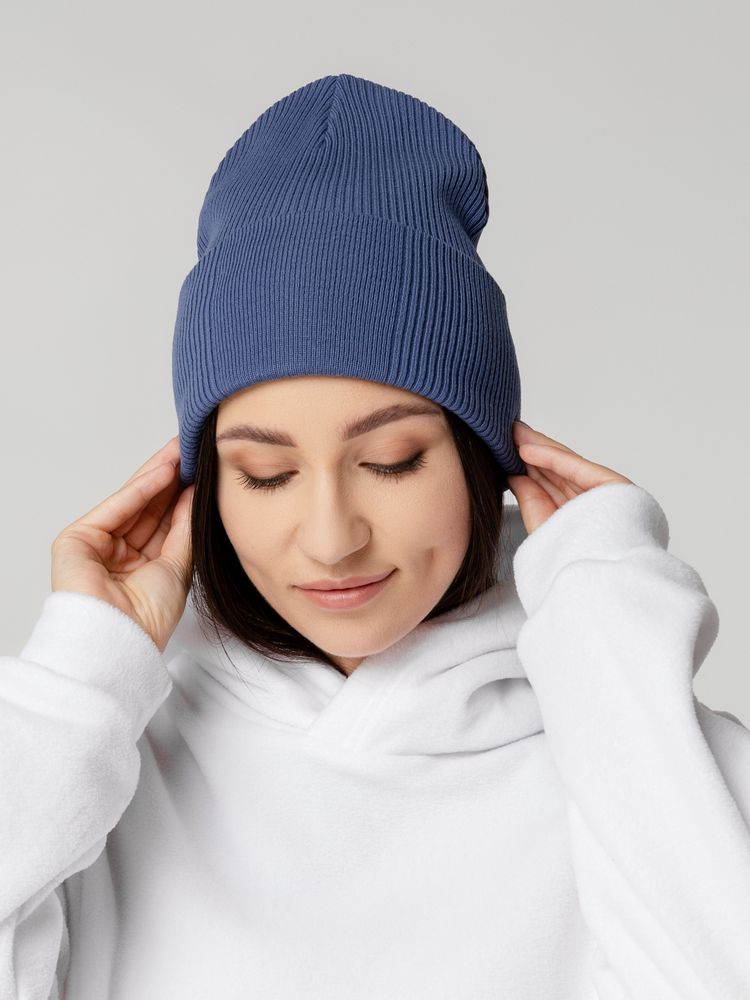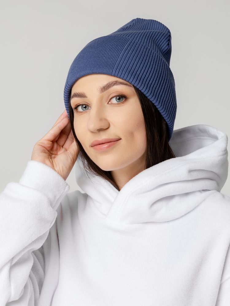 Двухслойная шапка фактурной вязки с отворотом и специальной более гладкой областью под вышивку.