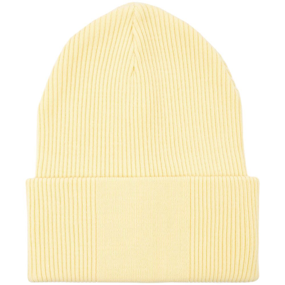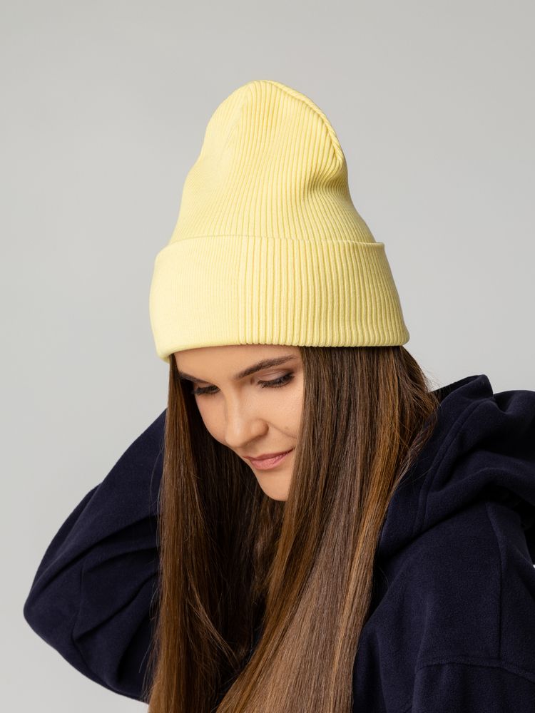 Двухслойная шапка фактурной вязки с отворотом и специальной более гладкой областью под вышивку.