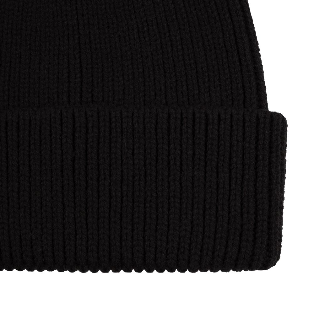 Однослойная шапка рельефной вязки с отворотом.