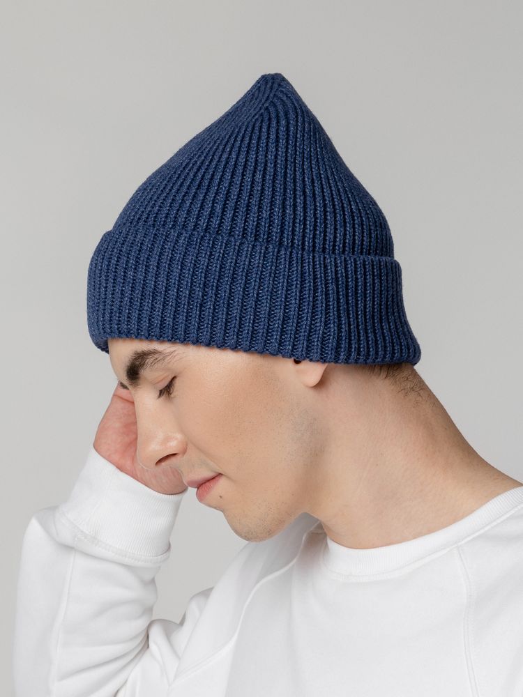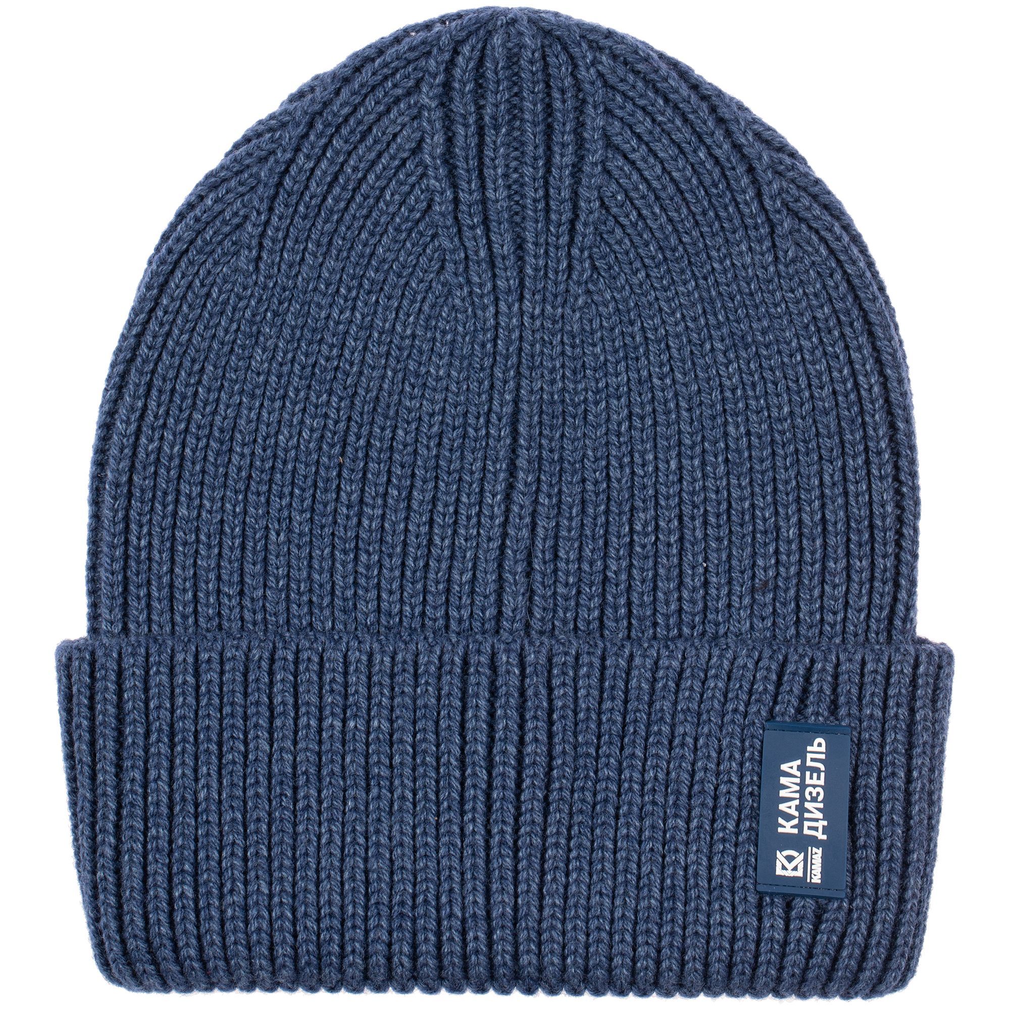 Однослойная шапка рельефной вязки с отворотом.