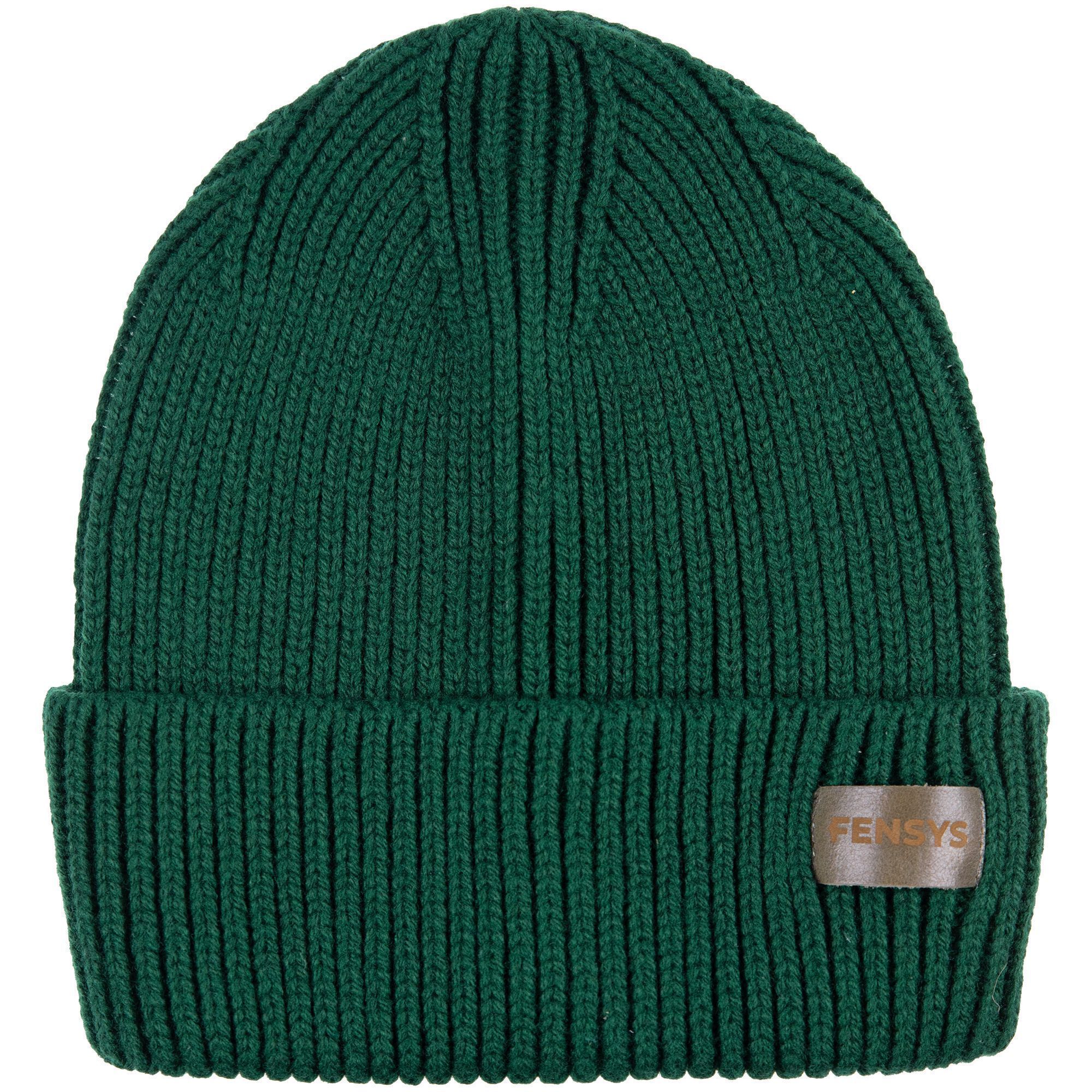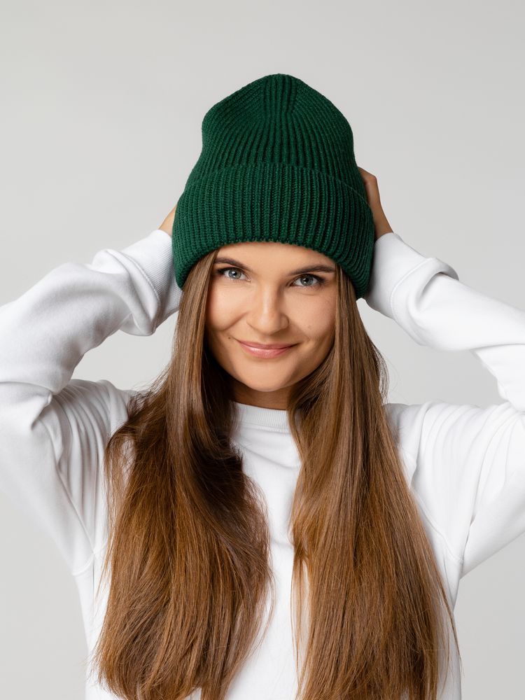 Однослойная шапка рельефной вязки с отворотом.