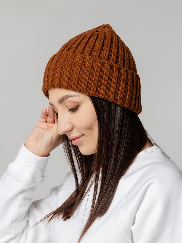 Модная шапка-бини, связанная резинкой, универсальна и подходит для самых непосредственных и легких образов.