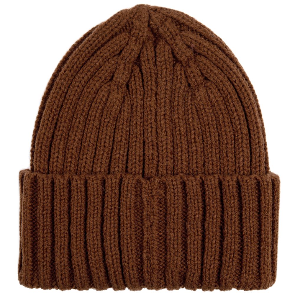 Однослойная шапка рельефной вязки с отворотом.