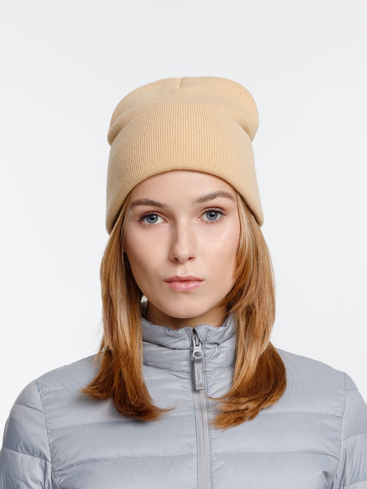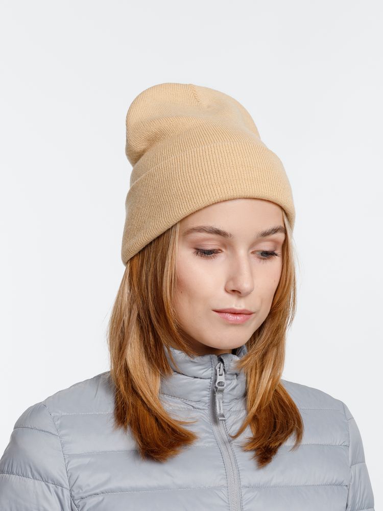 Двухслойная шапка из акриловой пряжи с регулируемым отворотом 7–10 см.